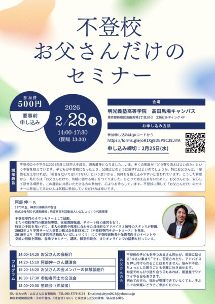 不登校に関して「お父さんだけ」に参加してみたい人は気軽に参加していただければ幸いです。